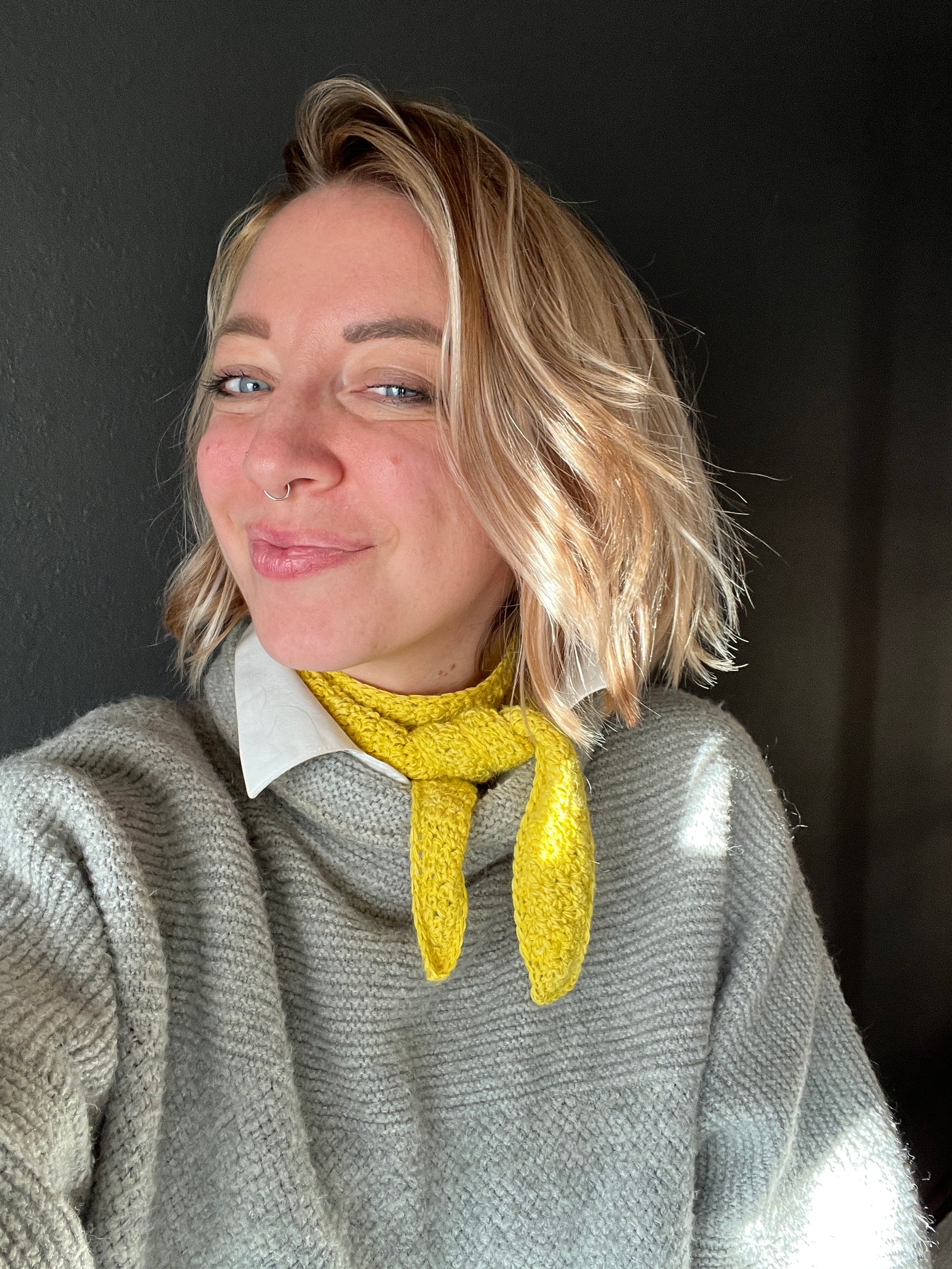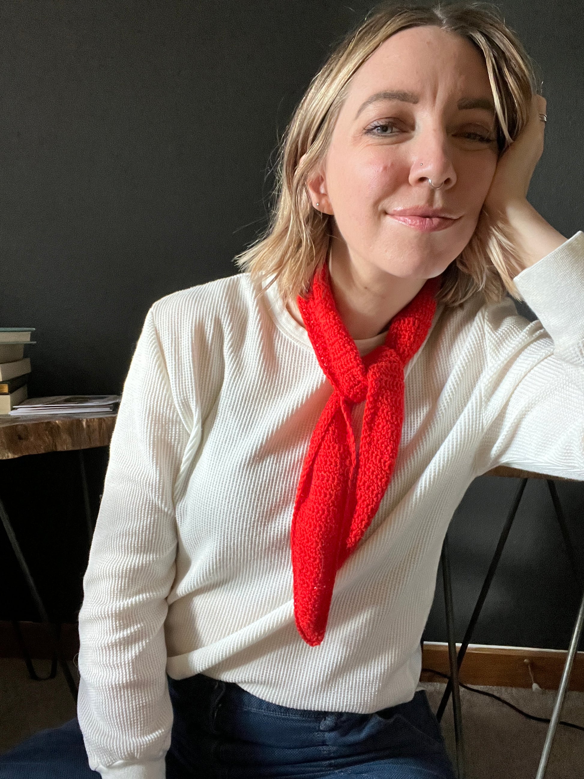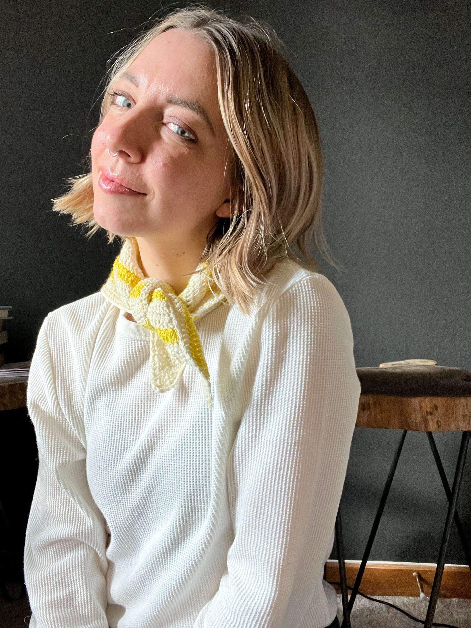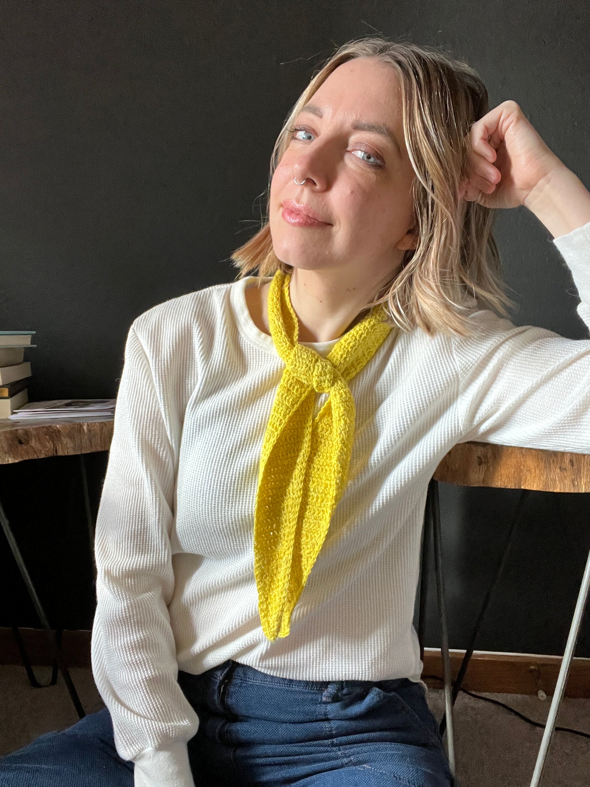 Mini Tie: 1 ball of WeCrochet Palette, fingering weight, 100% Peruvian Highland Wool, 231 yards/50 grams).
