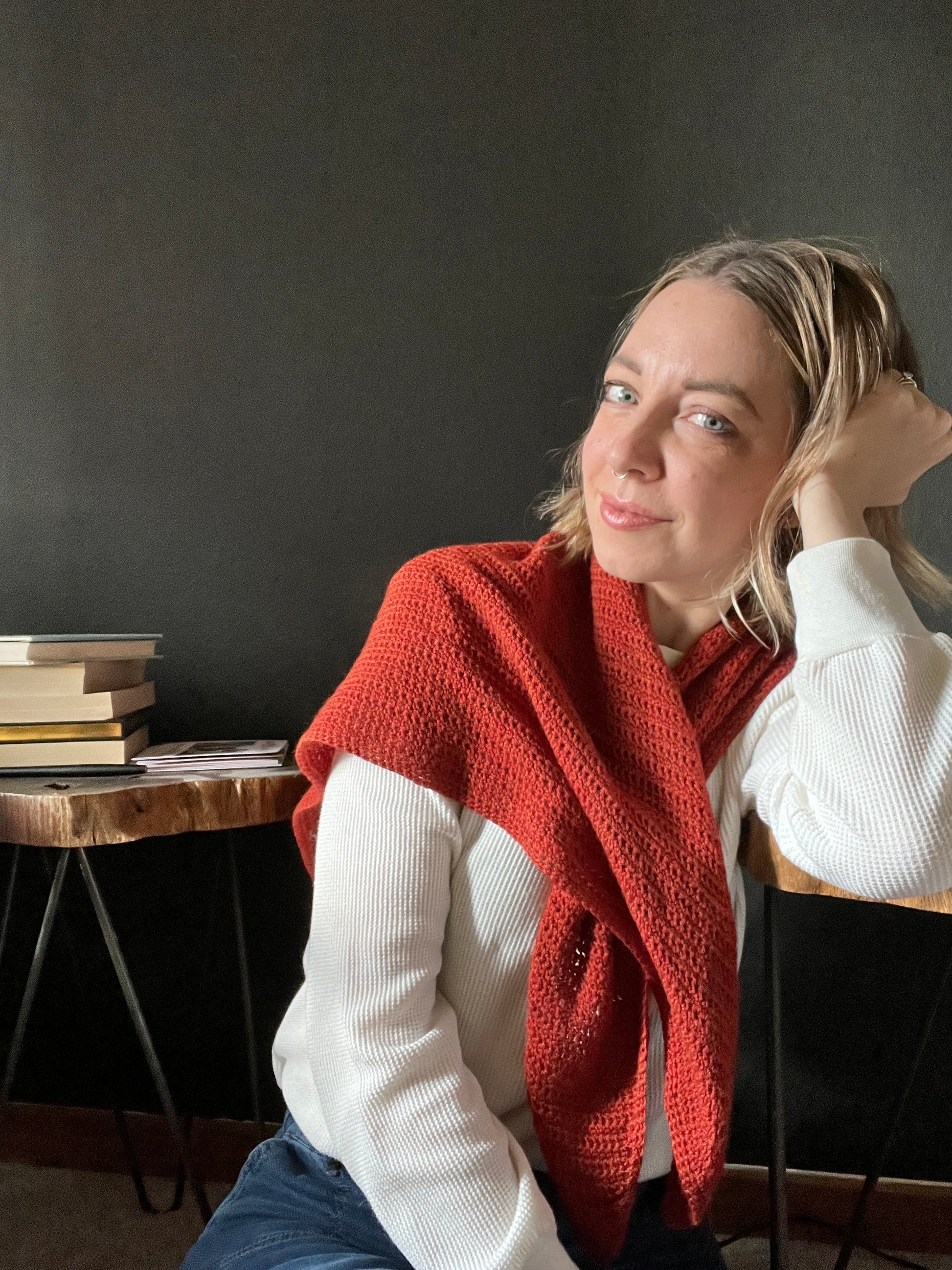 Small Triangle: 2 balls of WeCrochet Palette, fingering weight, 100% Peruvian Highland Wool, 231 yards/50 grams).