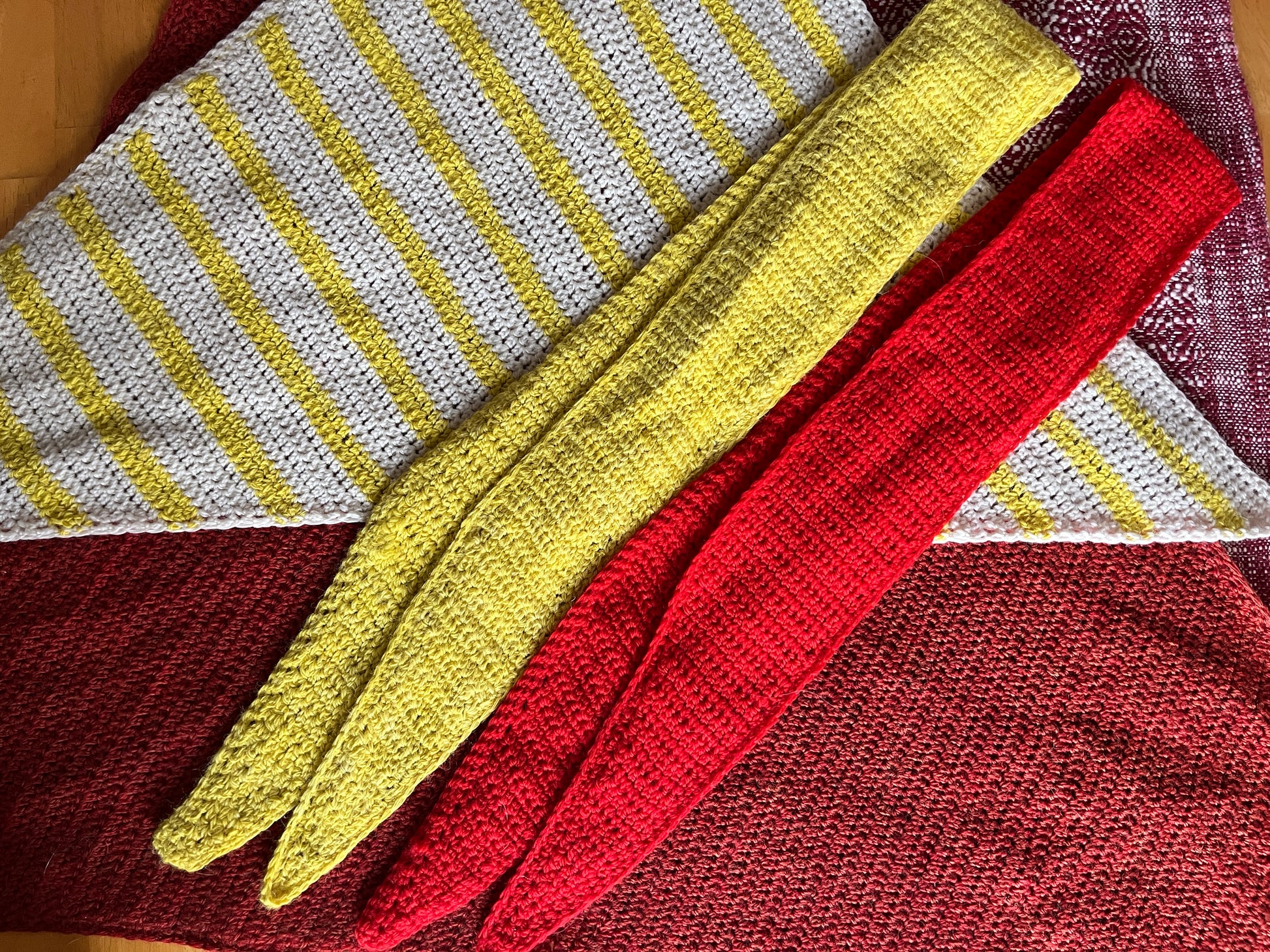 Large Triangle: 33” on starting edge, 43” on each decrease edge